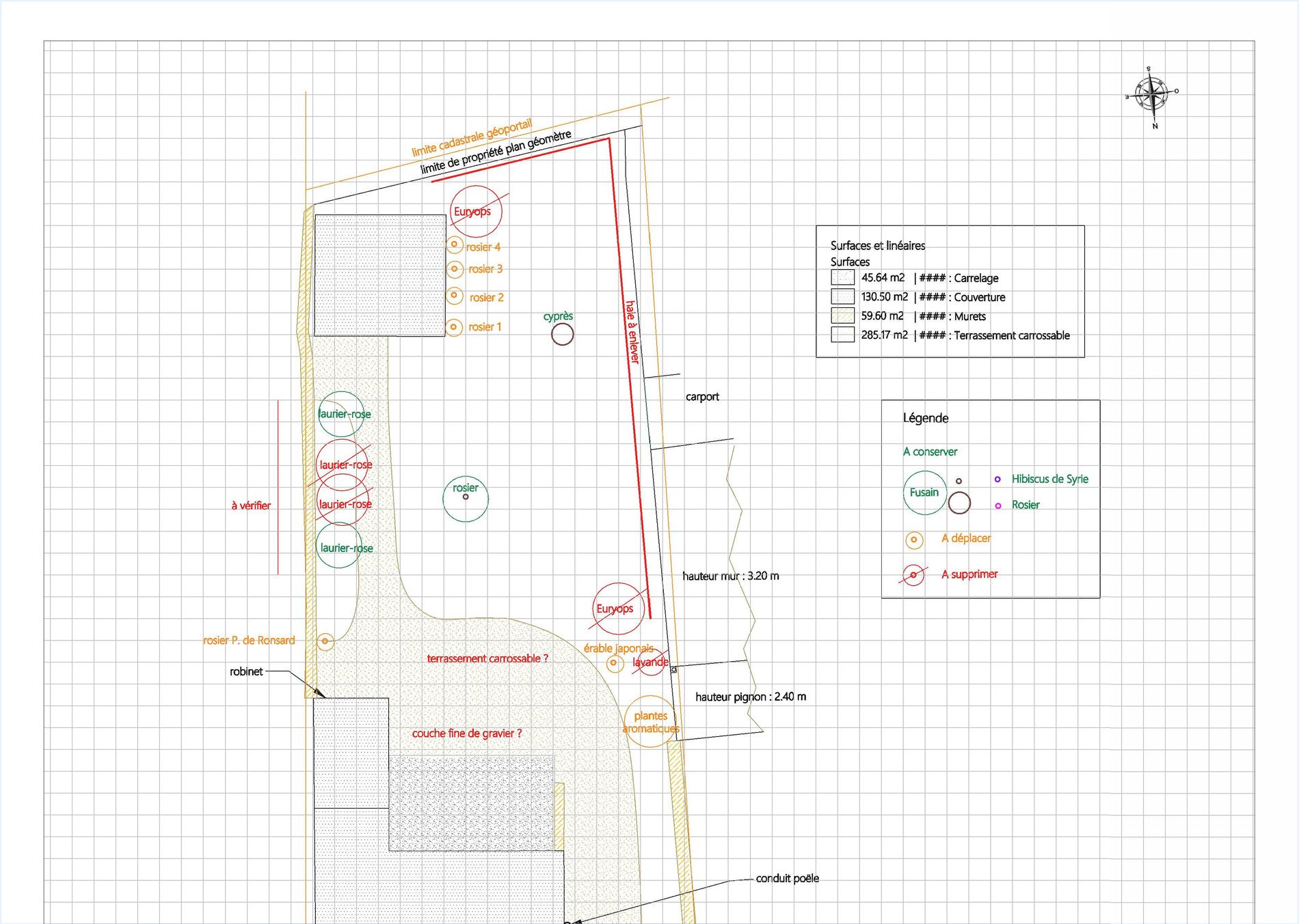 le plan de l’existant, le plan d’aménagement et les plans de plantation.